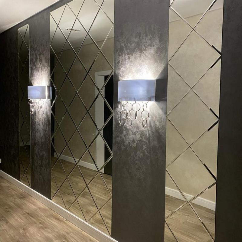 Использована зеркальная плитка "вытянутый ромб" с фацетом.